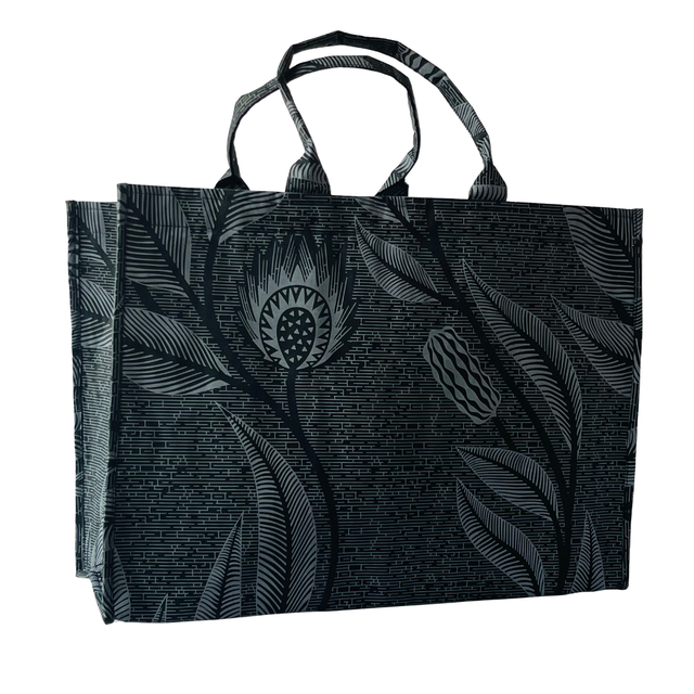 Le cabas d’Amahès au format très pratique, mélange le tissu wax et le sac de riz recyclé. Le sac de riz, confirmant le courant upcycling, est un matériau très résistant qui permet de porter des choses lourdes. Le wax, tissu de coton imprimé est au cœur des tendances. Ces matériaux donnent au cabas un look et un esprit uniques.